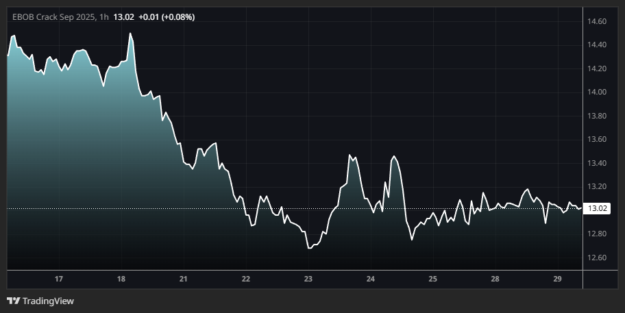 • EBOB cracks have recently sold off from $15 to $13, creating a potential opportunity for a rebound