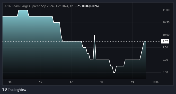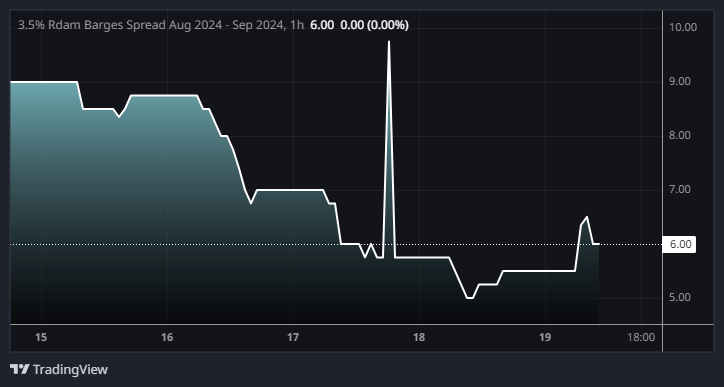 Over the last couple of days, we have seen Aug/Oct fall from $19.50 to $13.50. We’re seeing a shift in sentiment this morning at barge cracks, and spreads are being well-bid with little sell side interest at these levels. As a result, we expect front spreads and cracks to rally into the afternoon.