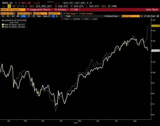 Nvidia is no longer the only choice, meet Broadcom…… the market mourns the loss of a monopoly (Chart 2, Bloomberg, @HayekAndKeynes)