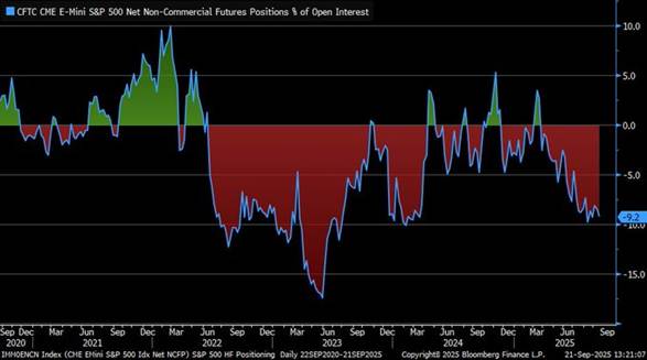Large speculators added to net short positions for S&P 500 futures in past week, maintaining their bearish view (Chart 1, Bloomberg)