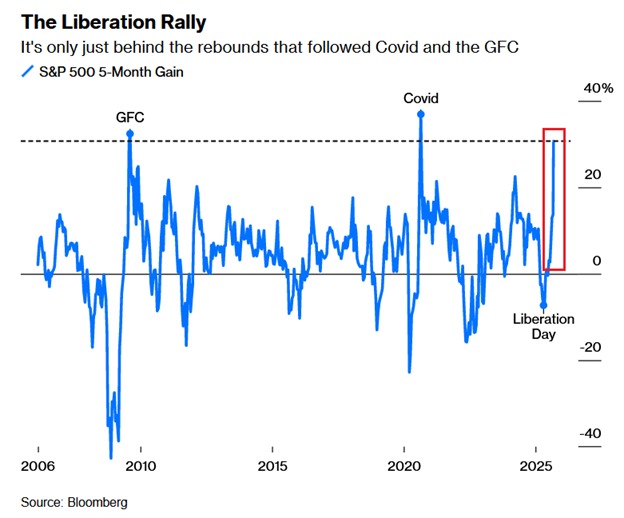 The S&P 500 closed at a new all-time high and is now up +36% since the April 2025 bottom. That’s +$15 TRILLION in market cap in 5 months. This is the most since the COVID recovery and 1% point less than the Great Financial Crisis recovery. (Chart 1, Bloomberg)