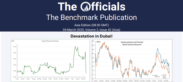 After well over 2 months, Brent is back on top. Not pricewise because it is way down nearly touching the 60 handle, but back on top of Dubai. Minor victory in a really bad day for prices. The spread between Brent and Dubai finally flipped positive for the first time since December 19th, with prompt Brent futures pricing $0.18/bbl above Dubai partials. According to traders B/D started roofing last night following the announcement from OPEC, before continuing to gain aggressively through the Singapore window this morning. But traders also suggested the move was more due to Mr Taureau’s absence than the OPEC announcement, as spreads continue to sell off. Oh such big French boots to fill.