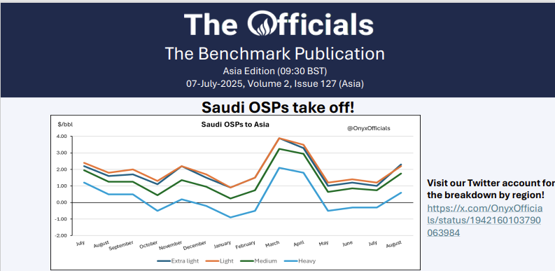 In ‘The Officials’, Onyx Capital Advisory publishes outright values, spreads, cracks and boxes for the main energy commodities traded in the marketplace. The published values are determined independently and on a fair market basis by our team of dedicated professionals.
