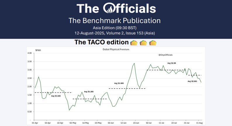 In ‘The Officials’, Onyx Capital Advisory publishes outright values, spreads, cracks and boxes for the main energy commodities traded in the marketplace. The published values are determined independently and on a fair market basis by our team of dedicated professionals.