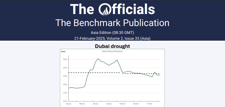 The familiar faces of the regulars turned up again for another cortège in the Dubai window – Vitol and PetroChina kept on buying from the usual sellers, Reliance and Chevron. But there’s a new boy in town. Shell waltzed in and lifted a Chevron offer, the first time we’ve seen them in a while – but just one trade for now. Again, there were a few other bidders there or thereabouts, but the likes of Trafi and BP kept their bids below the market. Yet, we’ve reached the end of the third week of February and we’ve still not seen one single convergence in Dubai. Nobody wants to dive in and seize the market – don’t worry, guys, Totsa are all off skiing, they’re not going to massacre you again.