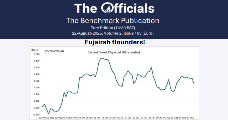 prompt gasoil swap crack $23.81/bbl. Despite its exposure and the swirl of rumors over the impact of the alleged cutoff, Vitol did a turtle thing and remained unresponsive to repeated requests for clarification on the impact the lack of the normal diet would have on their Fujairah refinery. We are patiently waiting for a reply but the market reaction tells you all you need to know. LSFO jumped!