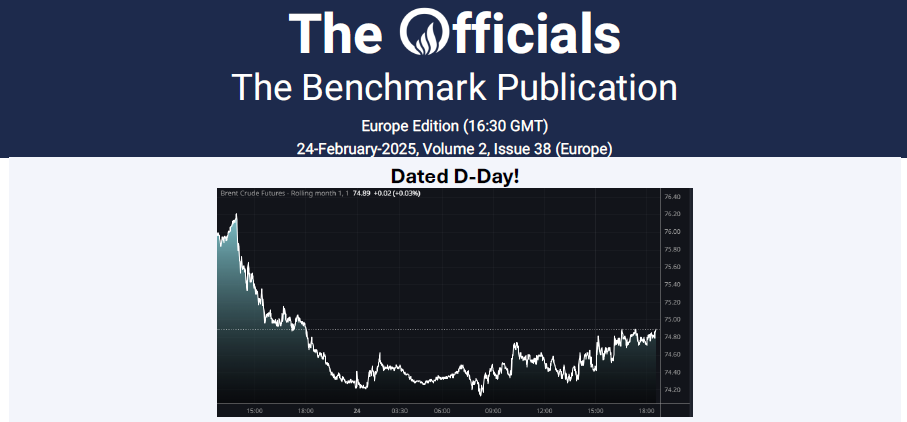The day is upon us. The Officials are delighted to offer the latest addition to the Benchmark Publication – our very own Dated Brent assessment. Today Dated Brent was assessed at $74.60/bbl. In the physical, the window was soft… again… The flow of Midland continues unabating. Mercuria, Exxon, BP and Unipec were all trying to flog the stuff. After persistent lowering from Mercuria, Petroineos snapped up a ripe CIF midland at Dated plus $0.80 for 8-12 March. Cepsa also lifted Exxon for a 18-22 March Midland at Dated plus $1. Mercuria was offering Forties, at -10c, but no one showed interest.