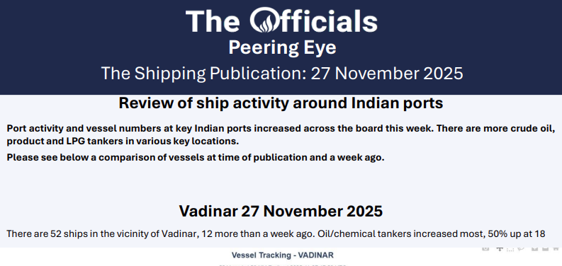 Port activity and vessel numbers at key Indian ports increased across the board this week. There are more crude oil, product and LPG tankers in various key locations.