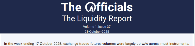 In the week ending 17 October 2025, exchange traded futures volumes were largely up w/w across most instruments. On a y/y basis, compared to the week ending 18 October 2024, exchange traded futures volumes increased across the front three tenors for Brent and gasoil.