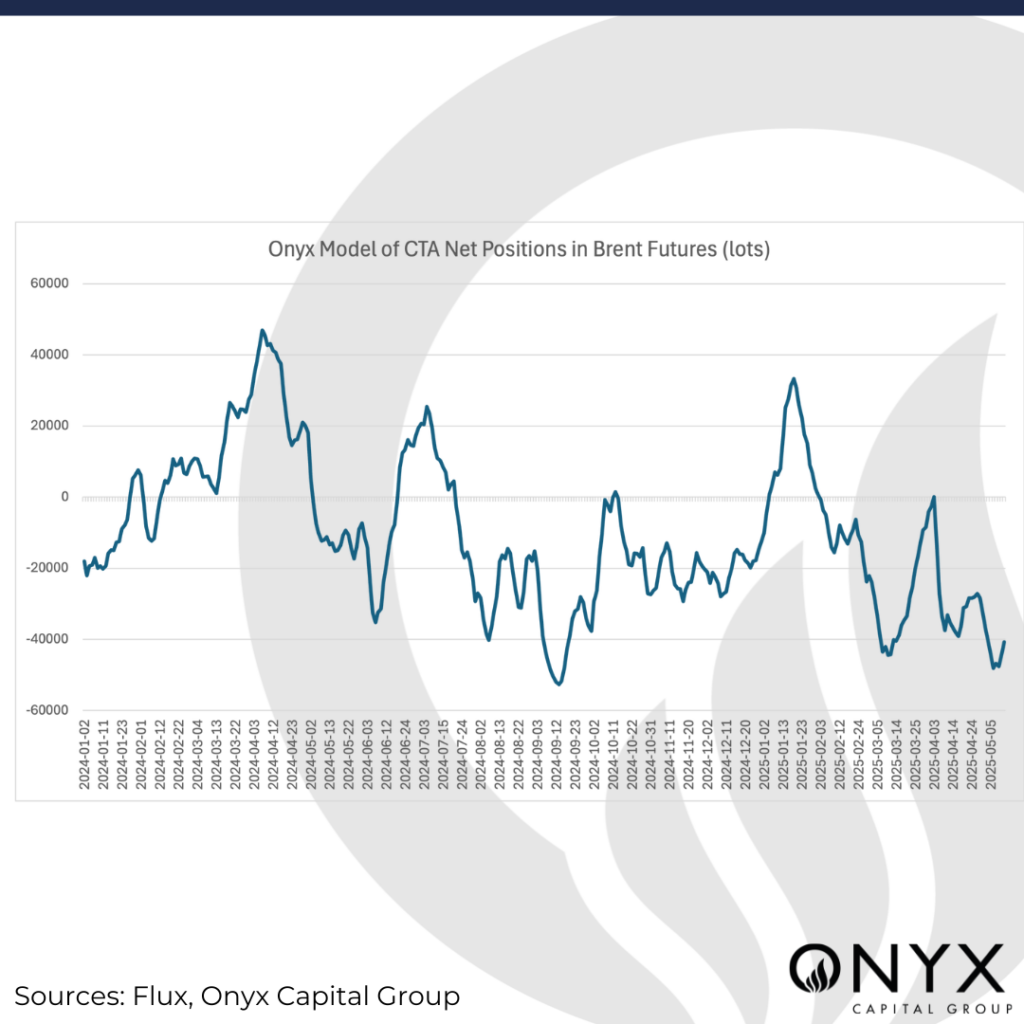 Finally, market positioning could play an outsized role in driving prices higher. CTA positions are climbing from a baseline of near-maximum shorts of -48k lots in Brent, and there remains substantial room for further buying if momentum builds. Meanwhile, ICE COT data for the week ending 6 May indicates that net length in Brent futures fell to the lowest level since October. This suggests both room to rebuild length and the potential for further rallies, in the event of bullish catalysts, driven by the unwinding of stretched short positioning.
