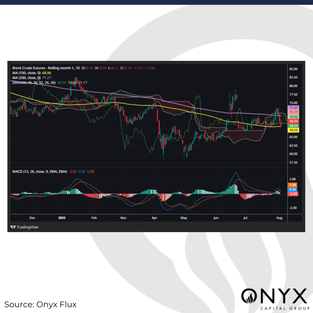 Last week, President Trump presented a shorter deadline for Russia to agree to a ceasefire in Ukraine, which is set to expire this week on 8 August. Severe tariffs were threatened, including 100% on Russia, with their trading partners also facing secondary sanctions. Meanwhile, a bipartisan bill (Sanctioning Russia Act of 2025) has been proposed by Congress, which includes a 500% tariff on imports from nations purchasing Russian oil, gas, and uranium. However, the mechanism for enforcing any potential new sanctions and their effectiveness is unclear. Moreover, previous experience shows that Trump’s deadlines are often not set in stone and subject to change. As Trump dials up his bellicose rhetoric towards Russia, the market will look for clues regarding progress in peace negotiations, sanctions threats, and their implementation.