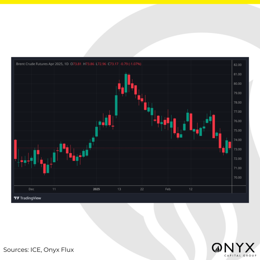 Ongoing progress toward a resolution in the Russia-Ukraine conflict continued to pressure crude oil markets throughout the week. On Tuesday (25 Feb), the US and Ukraine agreed on the terms of a draft minerals deal in exchange for security against Russia, with the Ukrainian Deputy Prime Minister claiming the deal would lay the groundwork for long-term cooperation between Kyiv and Washington. Meanwhile, Russian and US diplomats met on Thursday in Istanbul to restore normal functioning of their respective embassies, with Putin saying initial contacts with Trump’s new administration inspired hope. However, several obstacles remain before a ceasefire can be reached, with the Russian Foreign Minister Lavrov stating that fighting will only stop once there is “a solid and durable result that suits Russia”. On Wednesday, we saw a Russian drone attack damage a Ukrainian energy facility in the southeastern Dnipropetrovsk region, with Ukraine exchanging fire on Russia’s Tuapse oil refinery on the Black Sea coast. If these attacks against energy infrastructure continue, we could potentially see bullish sentiment pick up in Brent.