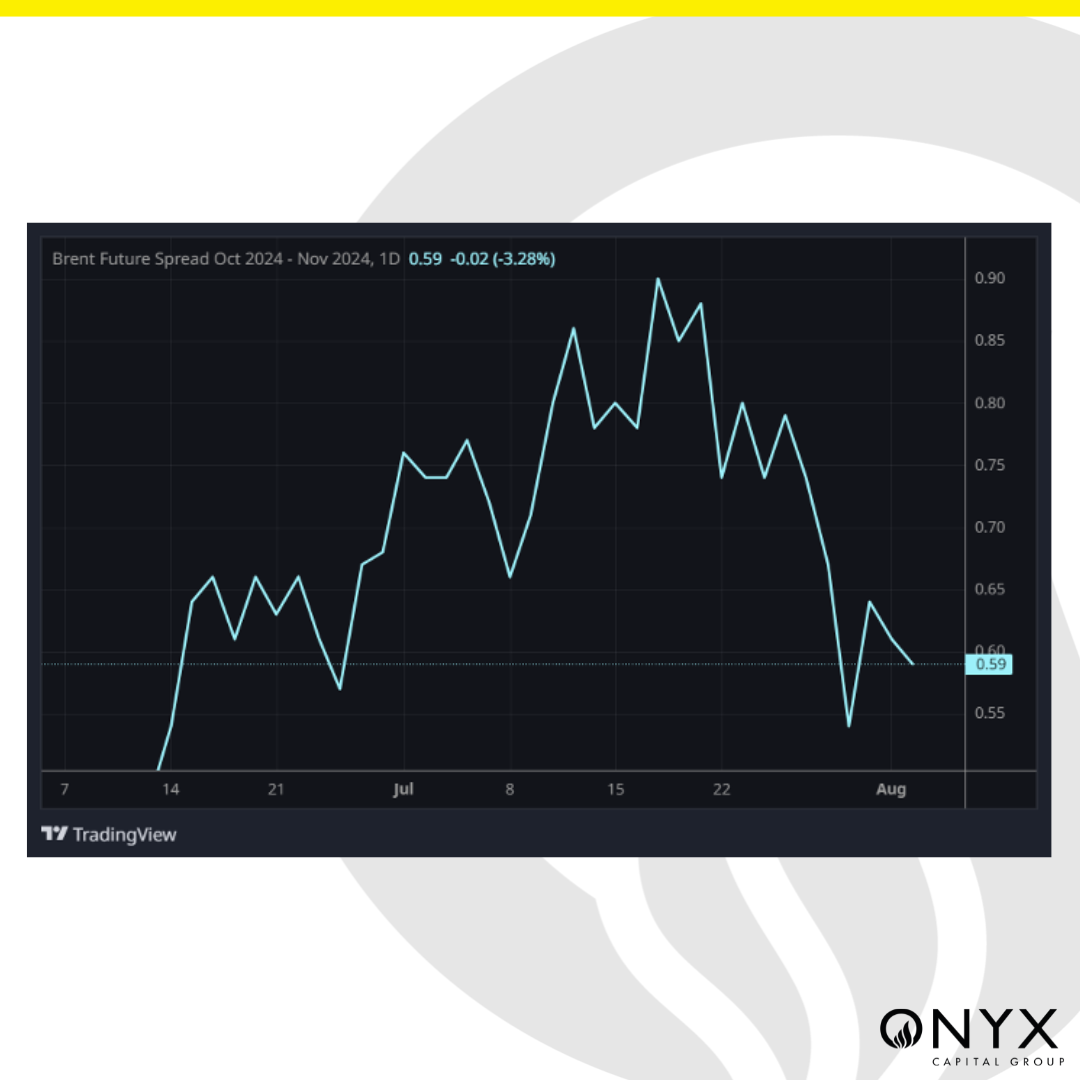 The Oct’24 Brent futures began the week on a bearish foot, settling at $79.10/bbl on Monday and then inched lower to $78.50/bbl the following day. The Oct/Nov’24 Brent futures time spread, however, collapsed from nearly $0.70/bbl on Monday to $0.55/bbl the next day. This sell-off in Brent spreads was pivotal in defining the weak sentiment in the futures contract, especially since the Oct/Nov spread was holding up around $0.80-0.90/bbl in previous weeks despite a weaker flat price. Considering the downward trajectory observed, this spread selling may have also been exacerbated by length stopping out. We subsequently saw a small recovery the next day, amid the Sep’24 Brent futures expiry. Trafigura offered two Midland cargoes in 31 July’s physical window, 21c above the implied curve, which were lifted by Equinor. Amid these drivers, the Oct’24 Brent futures contract rallied to $81.55/bbl, where it closed on 31 July.