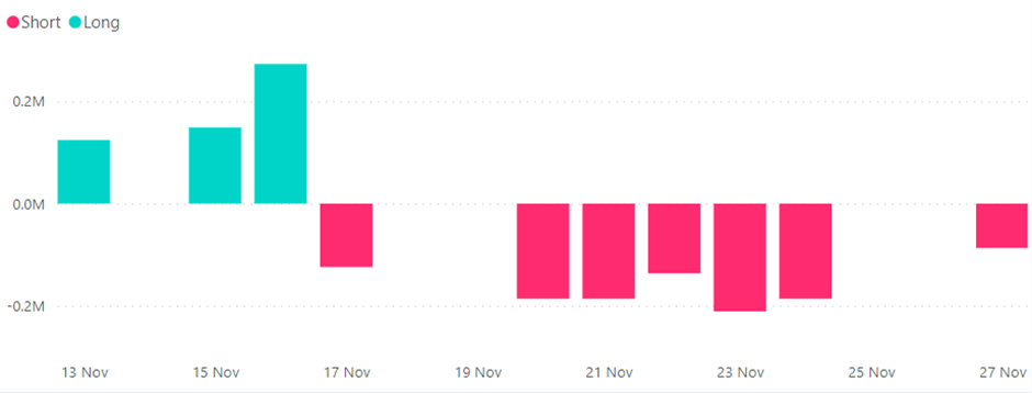 This change in trading behaviour likely indicates a strategic move by these trade houses to take profit on their existing positions. Given the end of the year approaching, maintaining a balanced portfolio becomes a priority, and this shift towards selling can be viewed as an effort to realise gains from their previous long positions. Additionally, this strategy could also be a precautionary measure to safeguard against potential losses, aligning with a more cautious approach as the year draws to a close.